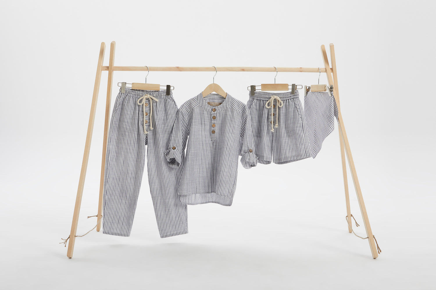 Kullanım rahatlığı ve işlevselliği sayesinde, çocuklar için keyifle ve özgürce tercih edebilecekleri parçalar, yine onlar için organik keten ve pamuk kumaşlar kullanılarak özenle tasarlandı.